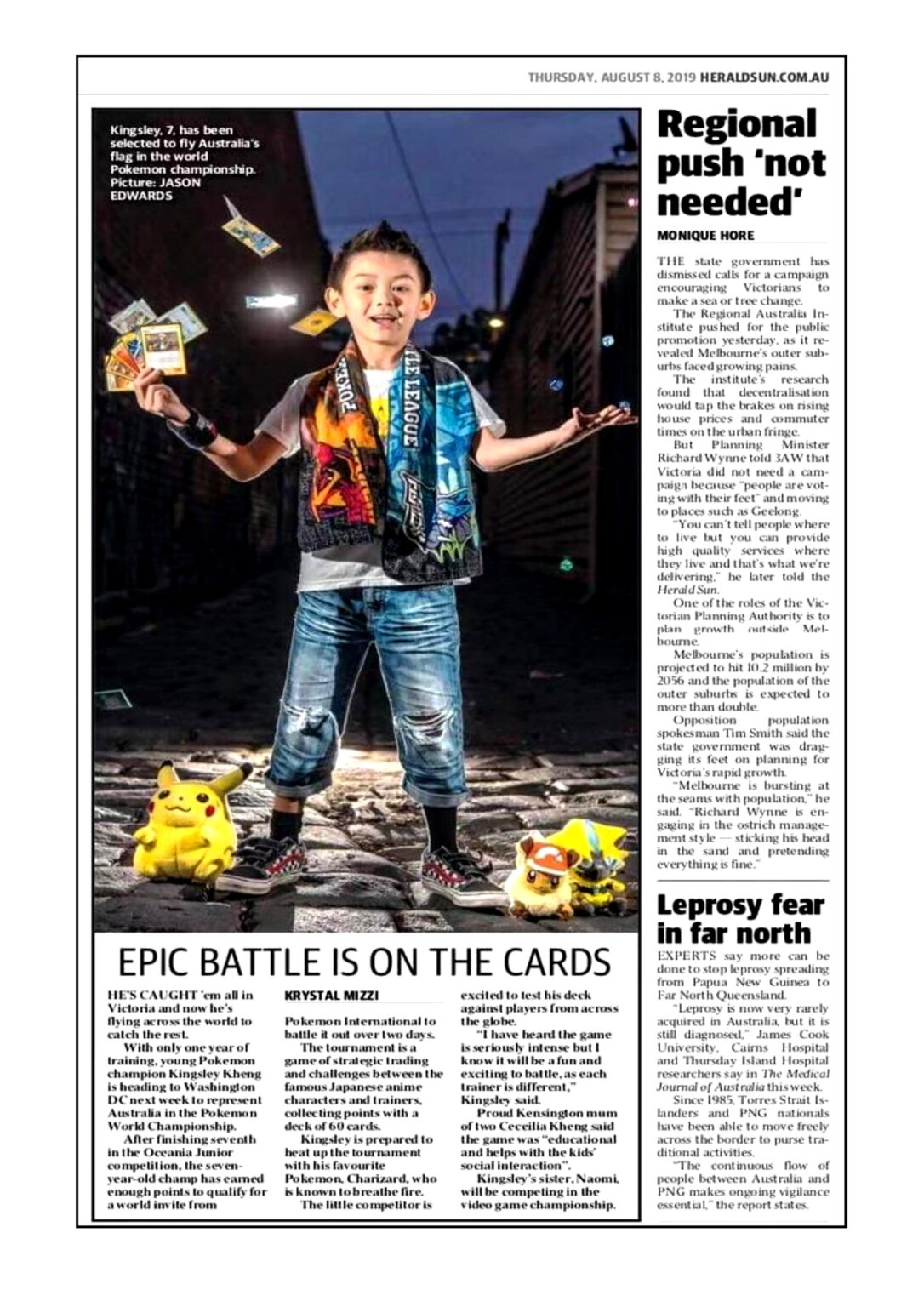 Kingsley Kingsley, 7, has been selected to fly Australia's flag in the world Pokemon championship. Picture: JASON EDWARDS